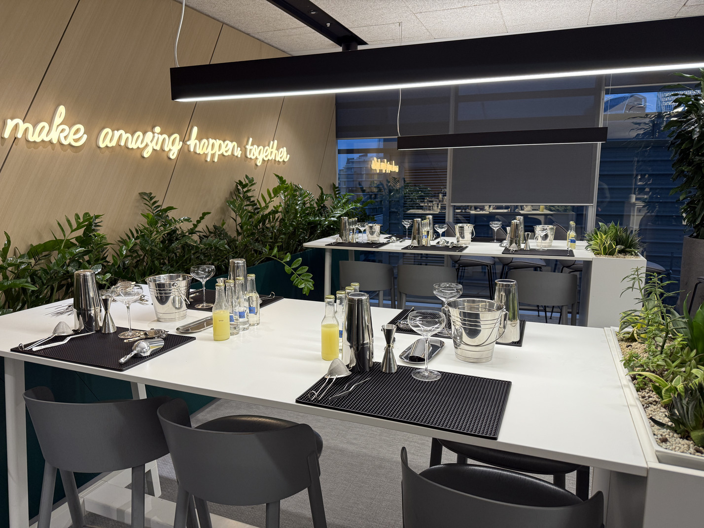 transformed the office space into a fully functioning cocktail workshop.